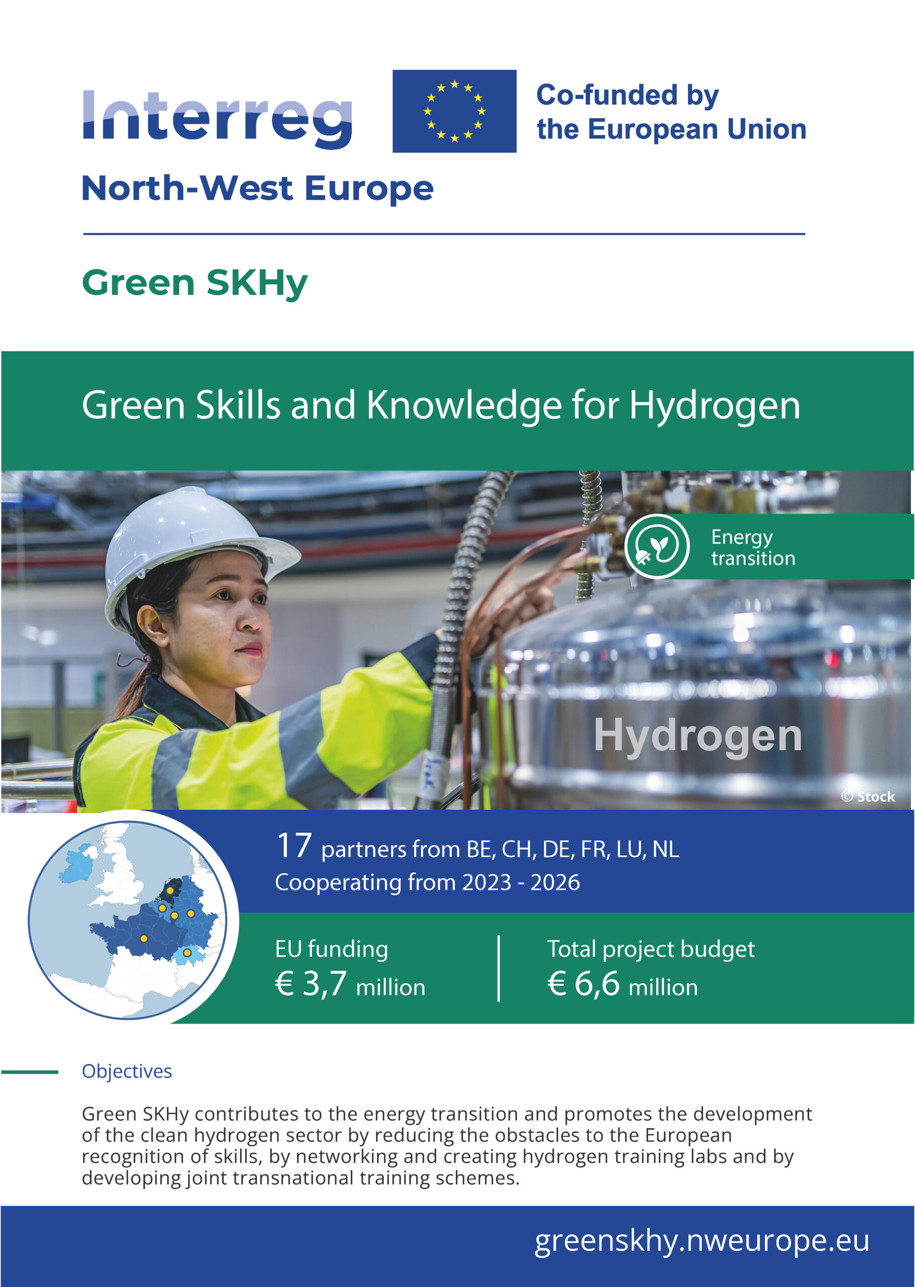 Depuis le 1er janvier 2024, l’Afpa coordonne le projet INTERREG Europe du Nord-Ouest « Green SKHy » relatif au développement des compétences hydrogène en Allemagne, Belgique, France, Luxembourg, Pays-Bas et Suisse.
